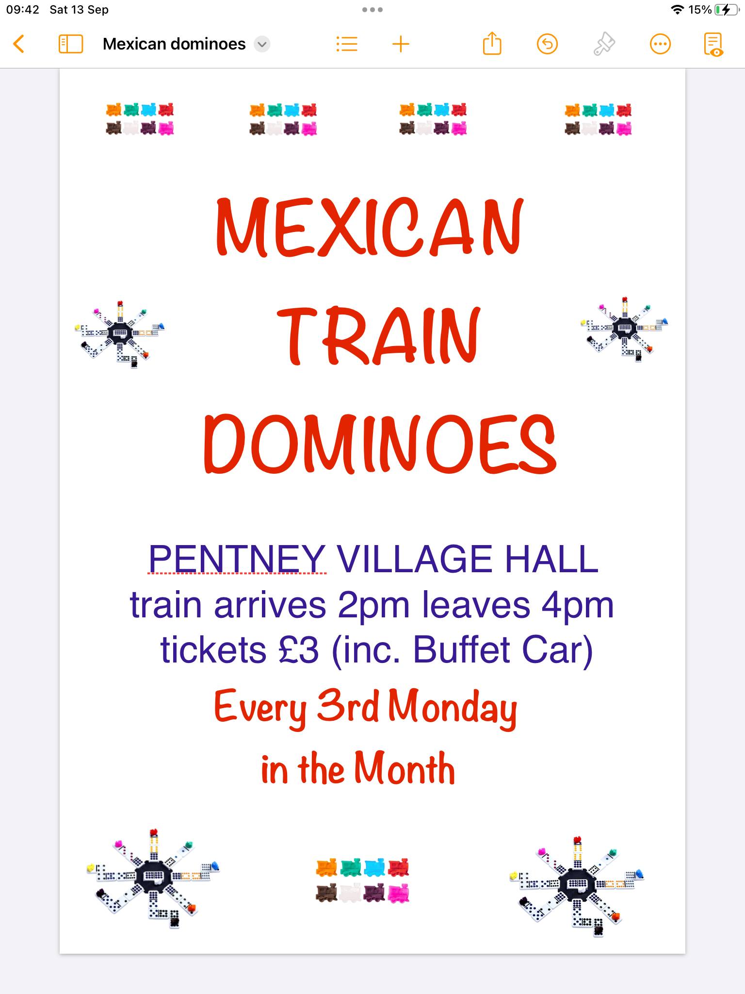 All current public events at the village hall below